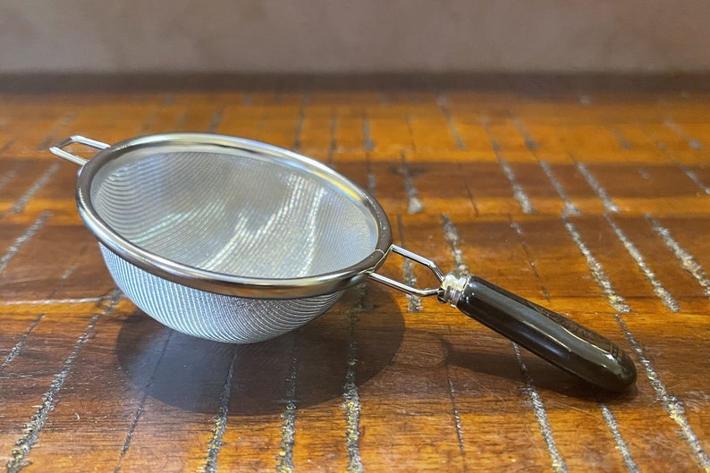 English- Tea Strainer- Stainless- with a Black handle